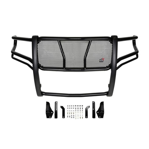 The HDX Grille Guard is the ultimate in extreme truck gear. Its a fully welded 1-piece grille guard that features full wraparound wings made of heavy duty 2in. diameter tube. Uprights are finished and protected with extra wide rubber that is 1/8in. thick and 2 3/4in. wide resulting in a solid clean look. The full punch plate grille protects the vehicles grille area. HDX Grille Guards are available in stainless and black powder coat finish.