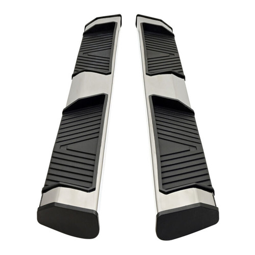 AT6 Running Boards are designed for full size trucks and feature a 5-inch wide step area with integrated indented pads for solid footing. Built with clean, rounded end caps and bracket covers for an OEM?style appearance, they offer a refined yet rugged look. Two finish options are available, textured black powder-coated extruded aluminum, backed by a 3?year limited warranty, or bright finish polished stainless steel with a limited lifetime warranty. These boards are lightweight but structurally durable, designed to minimize added weight with the strength for the toughest jobs. The footboard and pads are ergonomically placed for comfort and maximum traction. Bracket covers are used to conceal mounting hardware and help preserve that clean factory look. The AT6 models are vehicle-specific fit and include hardware to bolt on the boards with no drilling required. Installation takes about 1.5hrs, and depending on the height of the truck, should not require a lift. The aluminum construction offers excellent weather resistance with proper care and maintenance, but for harsh road conditions or regions where salt is used on the roadways during winter, choose stainless steel. Replace your factory running boards with AT6. They are a sleek, solidly built option with stylish design, ample stepping area, and finish choices for a custom look.