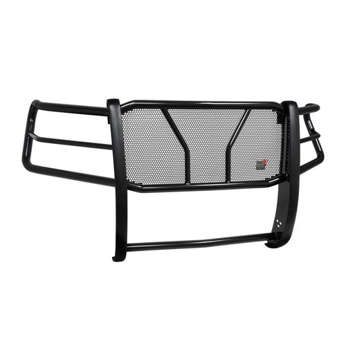 The HDX Grille Guard is the ultimate in extreme truck gear. Its a fully welded 1-piece grille guard that features full wraparound wings made of heavy duty 2in. diameter tube. Uprights are finished and protected with extra wide rubber that is 1/8in. thick and 2 3/4in. wide resulting in a solid clean look. The full punch plate grille protects the vehicles grille area. HDX Grille Guards are available in stainless and black powder coat finish.