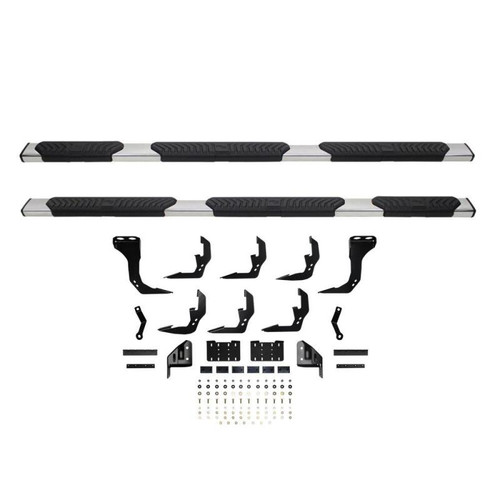Get a boost, with Westins R5 M-Series Wheel-To-Wheel Nerf Step Bars. The extra wide 5in. footprint step design provides easier and safer vehicle access for both drivers and passengers. Developed and engineered in the USA, the R5 M-Series Wheel-to-Wheel Nerf Step Bars feature three oversized skid resistant step pads allowing easy access to the vehicle cab or truck bed cargo area. Built with high-grade and corrosion resistant steel designed to mount directly to your vehicles existing rocker panels. The modular design saves you money on shipping, as no truck freight costs are required. Also included are injection molded bracket covers for a clean and stylish look. Westins exclusive Isolator Bracket supports the step bar past the truck cab, a feature that competitors do not offer. Without an Isolator Bracket, the step area that extends past the vehicle is left unsupported. Westins unique design provides added bar support without resulting in annoying creaking sounds.
