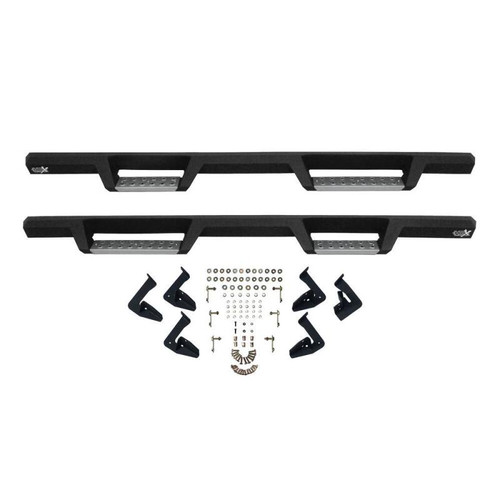 Westin's HDX Stainless Drop Nerf Step Bars are built with corrosion-resistant, textured black painted stainless steel designed to last under the toughest of conditions. With 1-piece construction, these nerf step bars provide over 2 added inches of toe/heel step area than our competitors and fit tight to the vehicle's rocker panel for a solid fit and rugged look. HDX Stainless Drop Nerf Step Bars include stainless steel step pads. Step plates are rust resistant and provide maximum traction. Bolt-on installation with no drilling is required. Includes mount kit.