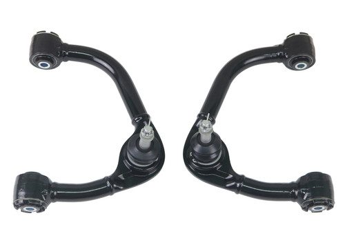 A short fall of the modern day IFS 4wd is the adjustment range provided for successful wheel alignments, this becomes even more of an issue when the vehicle is lifted by more than 1 inch. Not only does the vehicle run into camber and caster issues, but ball joint articulation and clearance issues to the coil over strut at ride and droop height. The new Whiteline offset UCA (Upper Control Arm) is an all-in-one solution for any vehicle that has been lifted between 30mm and 70mm. Providing an increase between +2.5 and +3.5 degrees of caster and up to 1.5 degrees of negative camber increase (figures quoted are based off an approximate 50mm/ 2 inch) along with greater clearance to the coil over strut and more articulation of the arm by virtue of new maintenance free GIIRO bushing technology.