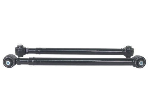 Heavy duty turnbuckle adjustable trailing arms provides incremental on car adjustability of differential pinion angle. This allows you to dial in more or less traction under heavy acceleration.