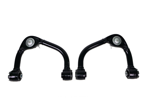 A short fall of the modern day IFS 4wd is the adjustment range provided for successful wheel alignments, this becomes even more of an issue when the vehicle is lifted by more than 1 inch. Not only does the vehicle run into camber and caster issues, but ball joint articulation and clearance issues to the coil over strut at ride and droop height. The new Whiteline offset UCA (Upper Control Arm) is an all-in-one solution for any vehicle that has been lifted between 30mm and 70mm. Providing an increase between +2.5 and +3.5 degrees of caster and up to 1.5 degrees of negative camber increase (figures quoted are based off an approximate 50mm/ 2 inch) along with greater clearance to the coil over strut and more articulation of the arm by virtue of new maintenance free GIIRO bushing technology.